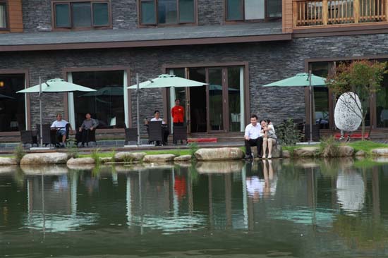 炎炎夏日,有什么比靜心清涼要來的重要!離黃山區(qū)譚家橋鎮(zhèn)約五公里遠有一處山坳,這里山巒疊嶂,松柏掩映,一座全木質結構的仿古建筑就矗立于此。會館二層的陽臺就面對著黃山的輪廓,云霧繚繞的黃山奇觀讓你無需遠足即可一覽無余。會館前面一處水潭,碧波蕩漾,水草豐盛,魚兒成群。水潭旁有可以休憩的亭榭和陽傘雅座。這個平靜的地方適合享受清茶和感悟自然。