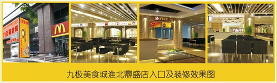 九極美食城是安徽九極營銷策劃有限責任公司鼎力打造的專業(yè)性餐飲美食主題文化廣場,位于鼎盛國際五樓商場,是九極美食城自宿州、淮南后的第三家分店。美食城面積約