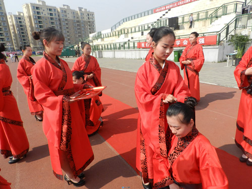 禮文化是華夏文化的核心,冠禮和笄禮是一個(gè)新的成人第一次踐行華夏禮儀, 也是冠者進(jìn)入華夏禮儀系統(tǒng)的起始。所謂"冠者禮之始也",淮北市天一中學(xué)繼承并發(fā)揚(yáng)這一優(yōu)良傳統(tǒng),堅(jiān)持從“品”樹人,從“學(xué)”育人。自2010年6月至今,據(jù)不完全統(tǒng)計(jì),已有5000多名學(xué)生接受天一中學(xué)成人儀式,成為頂天立地的成人。