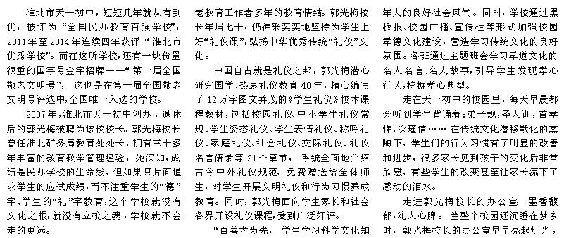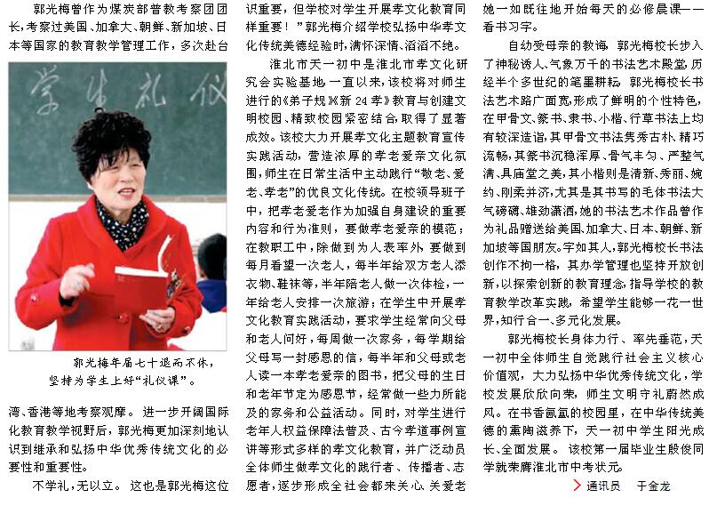 媒體報道:天一初中校長郭光梅崇“禮”樹人立校魂 寄身于翰墨 醉心于教育