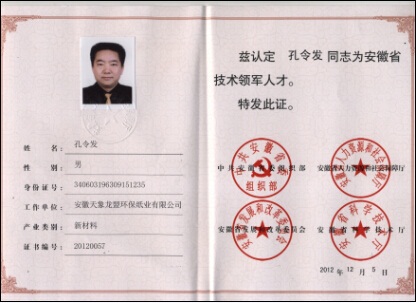 2012年孔董事長獲評安徽省技術(shù)領(lǐng)軍人才